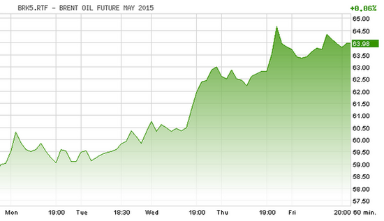 К этому добавим неблагоприятную геополитическую обстановку на Ближнем Востоке и снижение объема коммерческих запасов нефти в США. Это чревато дальнейшим ростом Brent на мировом рынке и достижения очередной психологической отметки на уровне 65 долларов.